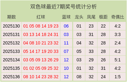 双色球最近7期奖号和数据分析表