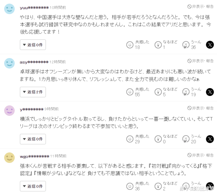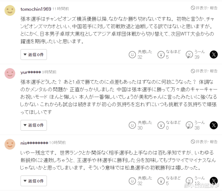 2.张本选手到底怎么了?明明只差1分就赢了,为什么会这样?不知道他是身体状态不行还是心理素质太差,老实说我对他很失望。