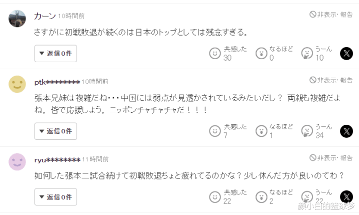 日本球迷是疯狂朝着张本智和开炮:1.张本选手在横滨夺冠后就一直表现不佳,此前的澳门冠军赛也好,这次北京大满贯也好张本选手都没有什么作为。他是日乒男队的主心骨,他如果调整不好状态,接下来的团体亚锦赛怎么办?