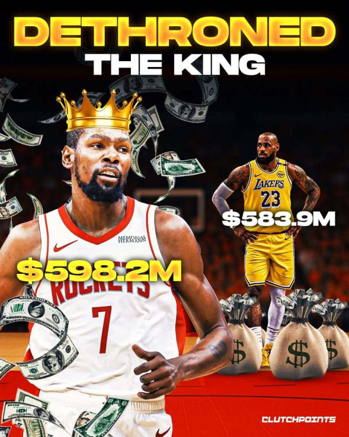 北京时间10月20日,距离新赛季NBA常规赛开战还有2天的时间。随着杜兰特与火箭队续约,NBA历史总薪资榜发生了变化,美媒统计出最新历史前十排名,杜兰特、詹姆斯、库里排名前三。