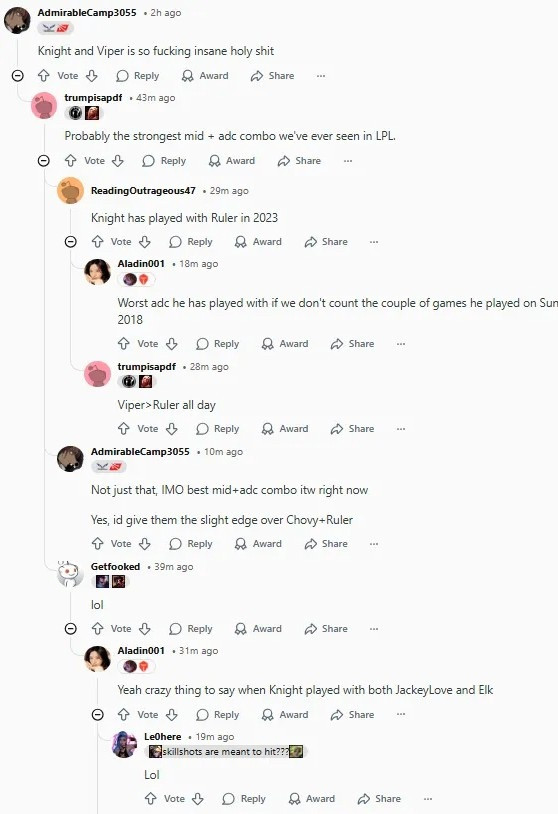 你不应该让人觉得Knight对打野很挑剔。Beichuan和Shad0w只是不够好,而Wei和Bin以及ON相处不好。Knight和Tian、Kanavi以及Karsa都配合得很好(好吧,直到Karsa状态下滑)。