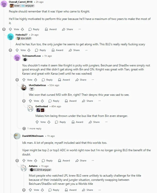 据说根据LPL粉丝的说法,Xun是2024年BLG的主call。Knight和Bin在语音中一直很安静,所以失去Xun有点破坏了他们的团队氛围。所以把他找回来非常重要。